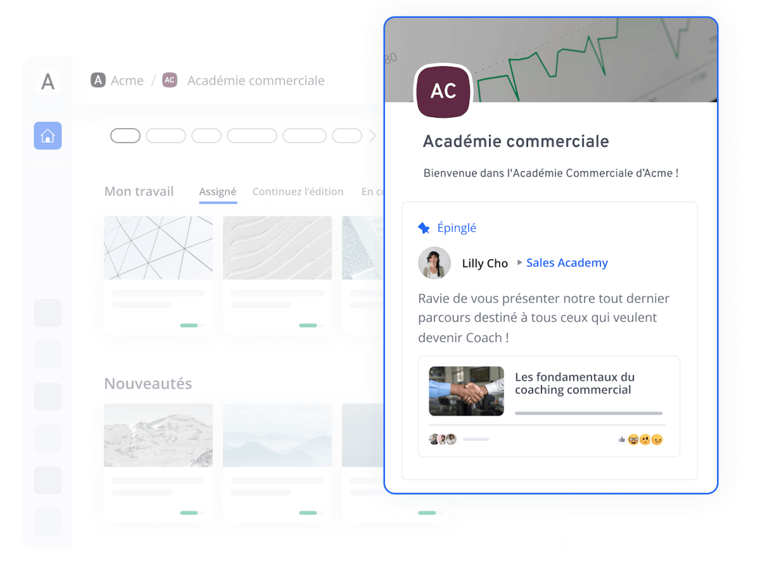 Permettez à vos collaborateurs experts au siège comme sur le terrain de partager leurs connaissances facilement grâce à un outil auteur facile à prendre en main. Laissez-vous guider par la création de modules de formation assistée par l’IA pour ne plus partir d’une feuille blanche.