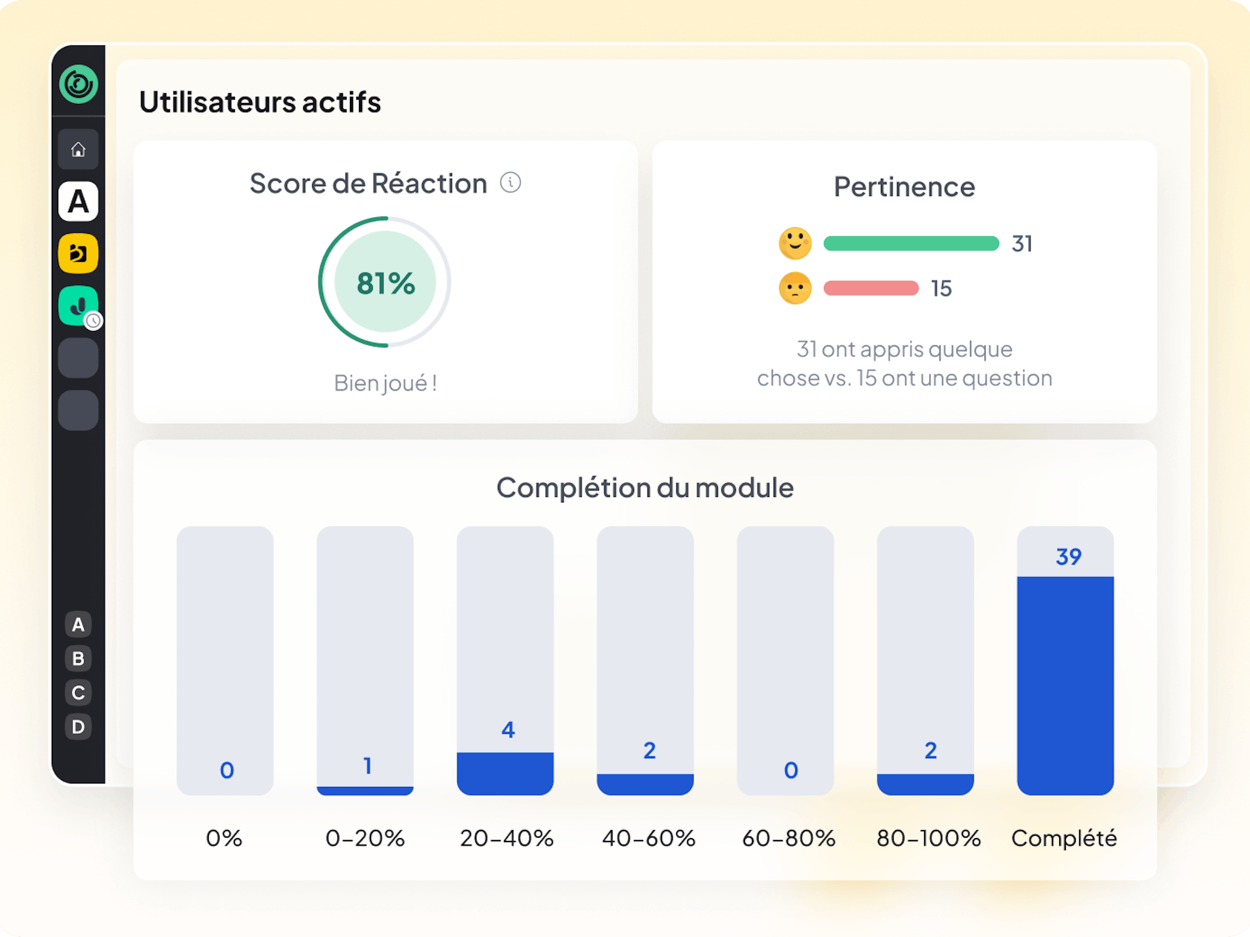 Incitez au partage de connaissances entre les équipes terrain, vos points de vente ou sites logistiques : favorisez l’apprentissage social et interactif grâce à nos fonctionnalités collaboratives.