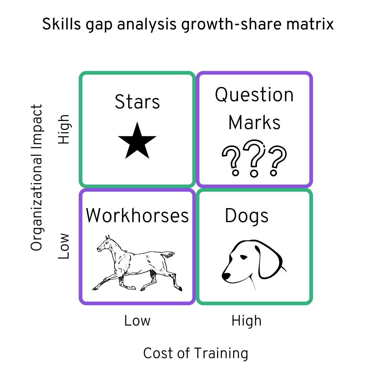 A skills gap analysis helps you decide what you do with the skills gaps you’ve identified. It’s typically a matrix that sets out your biggest opportunities, and therefore where you should invest in training.