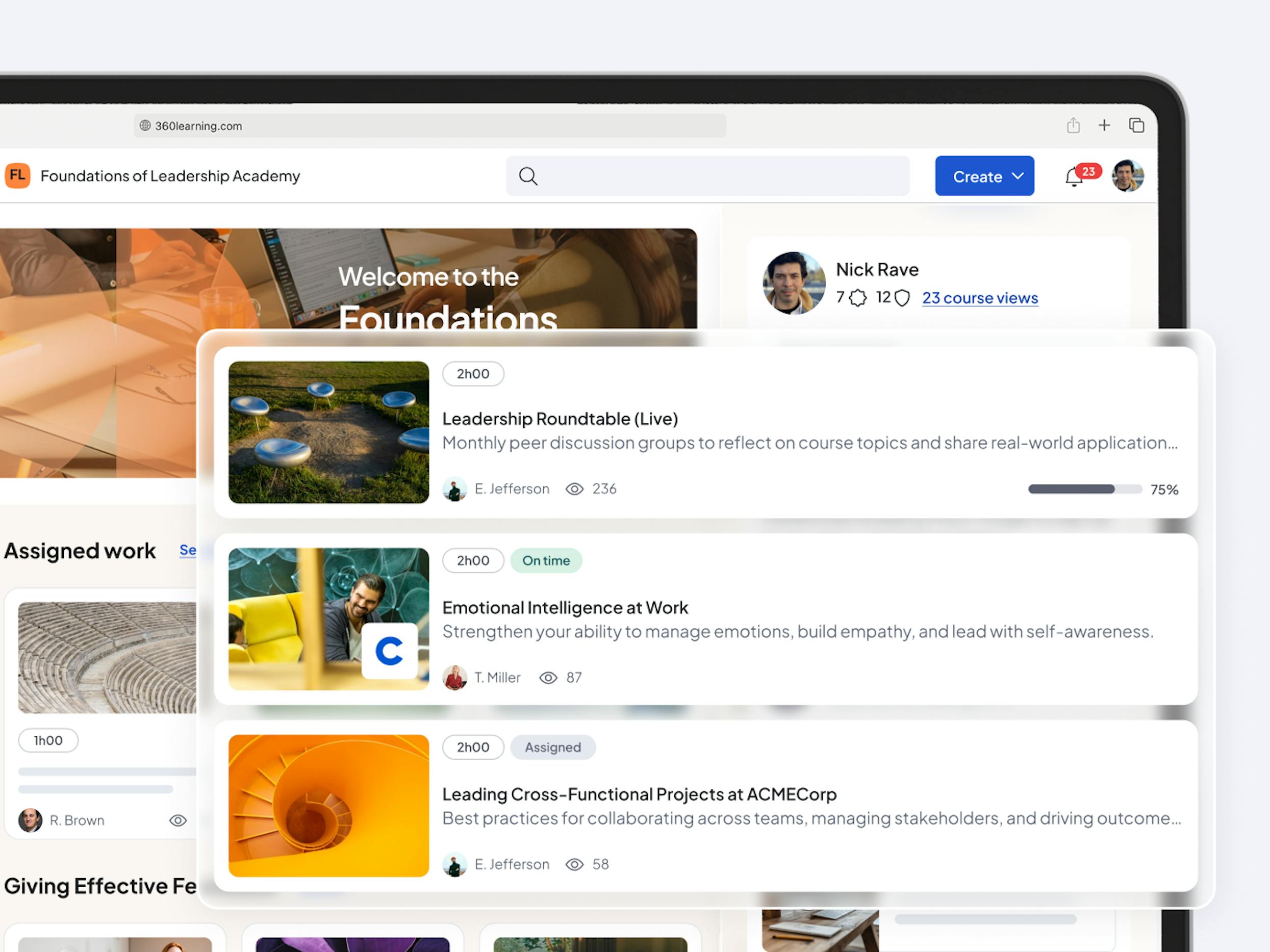 Keep courses fresh with real-time feedback from learners. See what they like and don't like with in-course commenting, threaded Q&As with upvoting, and learner relevance scoring, so you and your team can optimize course content and charge toward 91% completion rates.