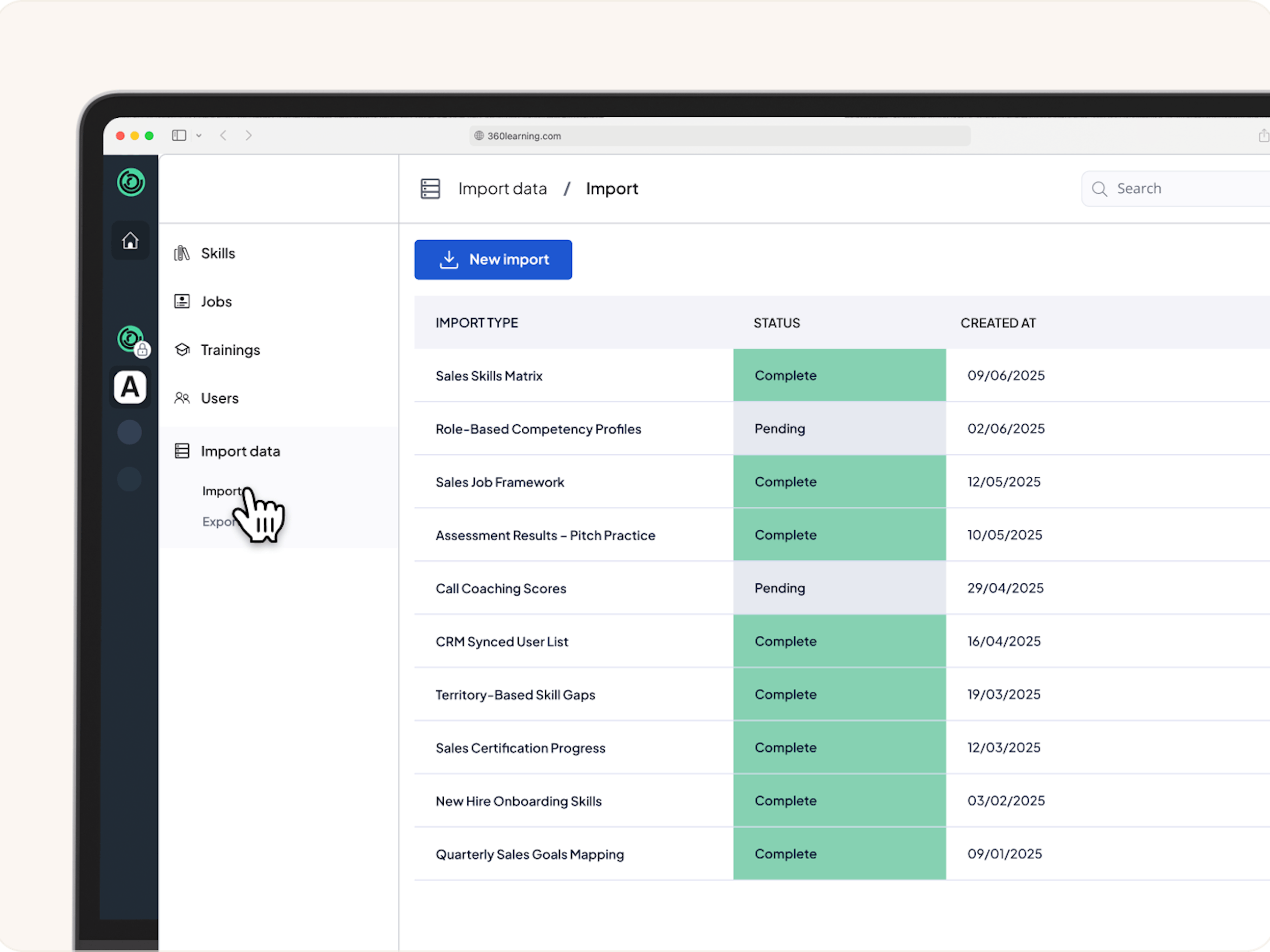 Easily import your skills ontology into 360Learning to refine skills, jobs, and users in one place.