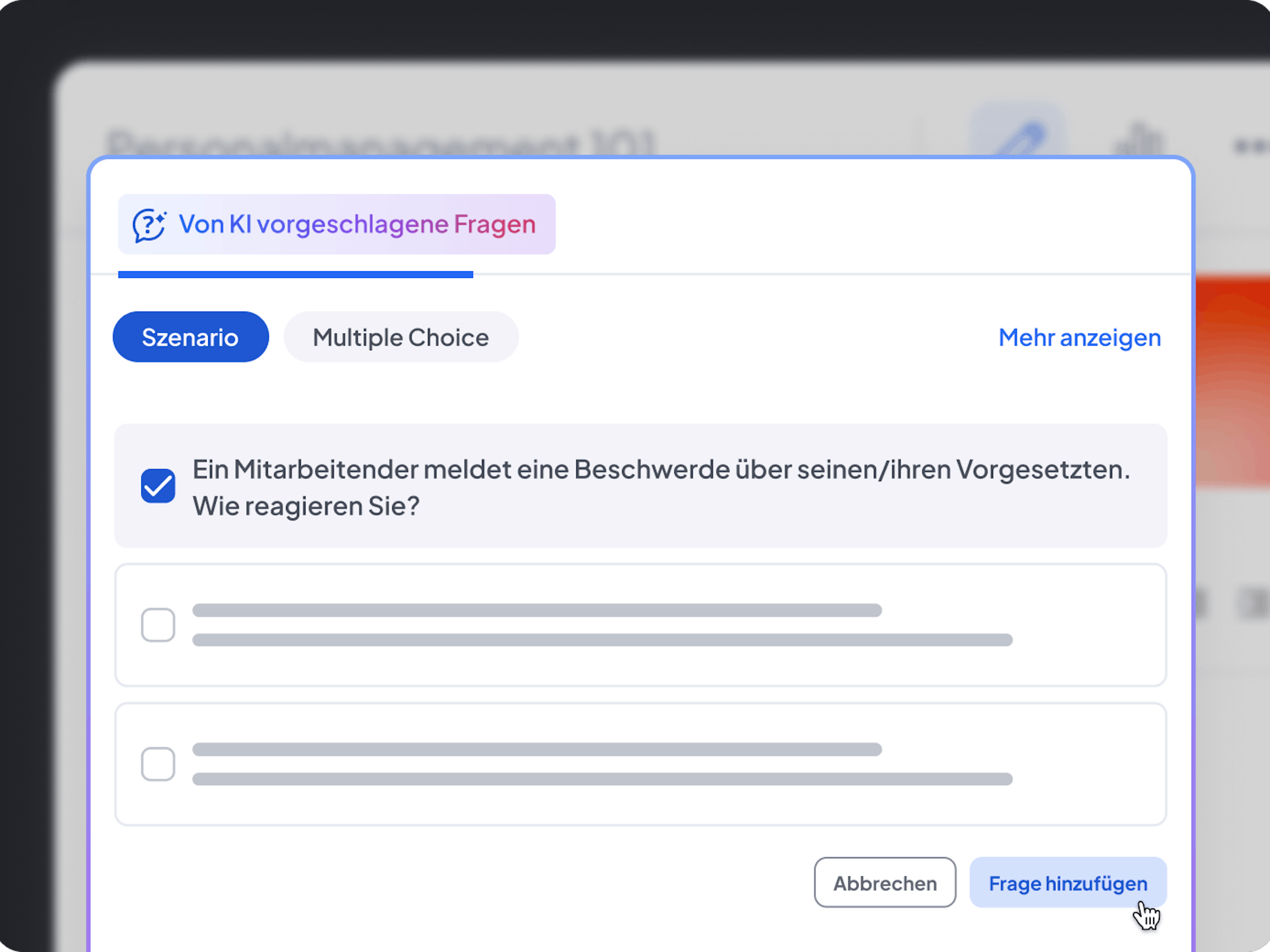 Erstellen Sie Kurse schneller mit einem KI-gestützten Fragengenerator, der Quizfragen auf der Grundlage Ihrer Inhalte mit einem einzigen Klick erstellt.