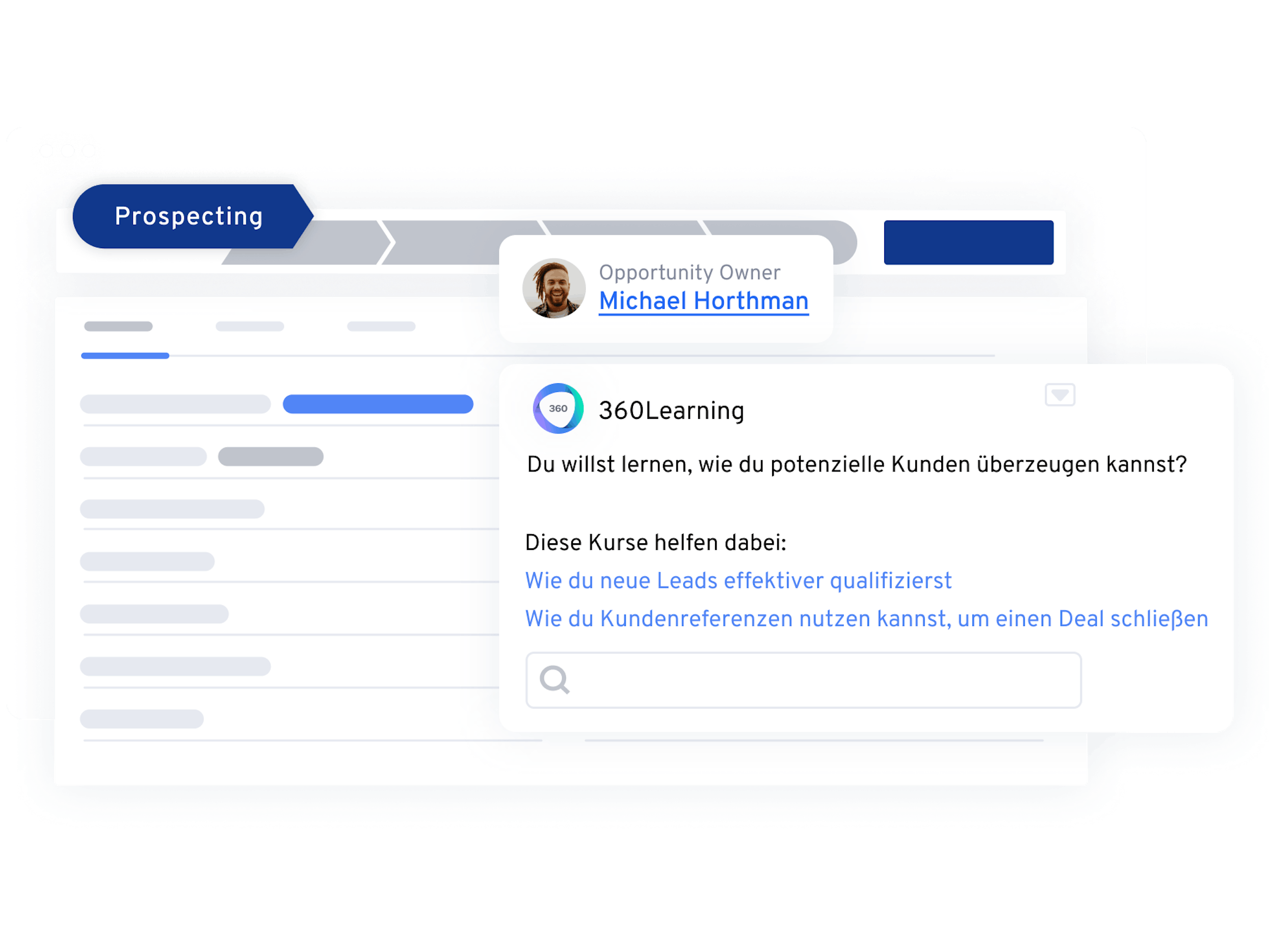 Strategische Unterstützung: Zeigen Sie Sales-Mitarbeitenden automatisch Kurse an, die auf dem Stadium einer Verkaufschance, dem Kundentyp oder der Konkurrenz basieren.
