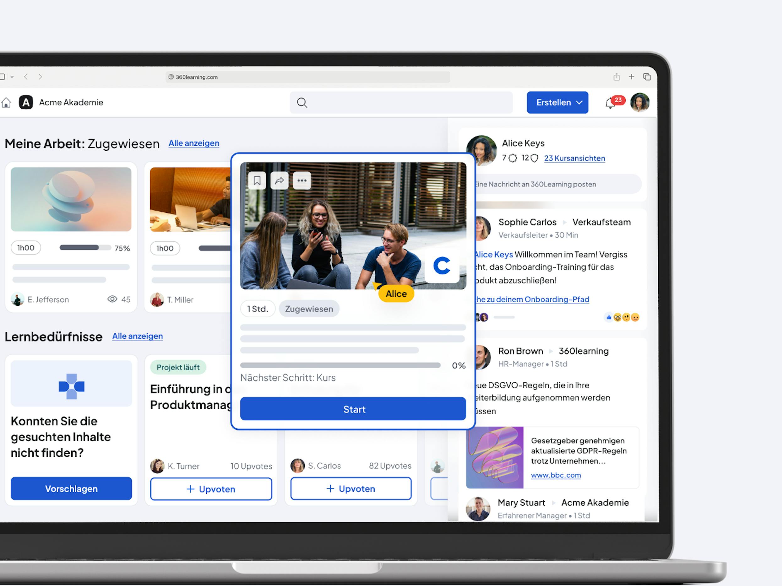 360Learning ermöglicht es Unternehmen, ihre Mitarbeitenden intern weiterzubilden, indem sie ihre Fachexpert:innen zu Wissensvermittlern machen. Unser kollaboratives LMS vereinfacht das Onboarding von Mitarbeitenden sowie das Training von Kundenteams und Partnern auf einer einzigen Plattform.