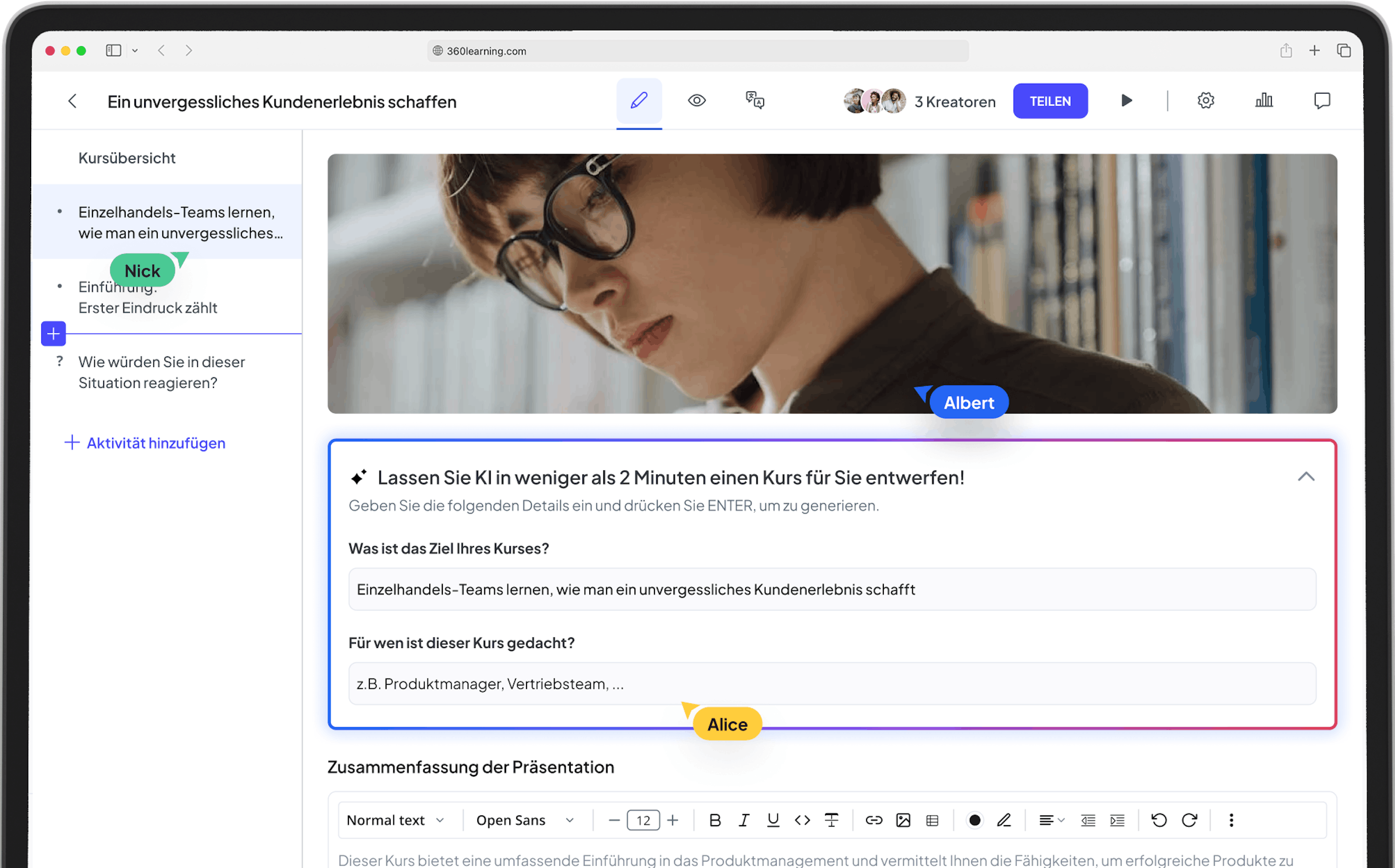 Wie unterstützt die KI von 360Learning eine schnellere und smartere Kurserstellung?