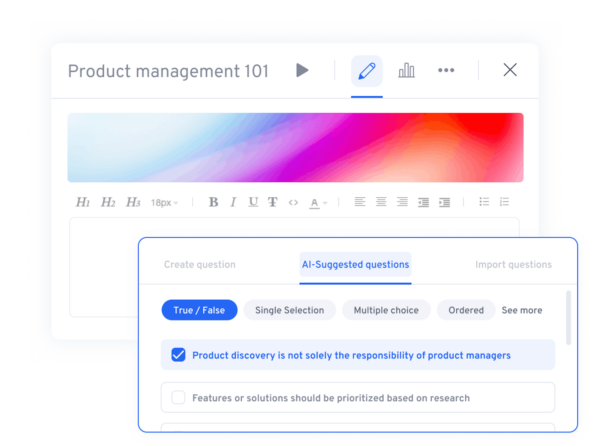 Creating engaging courses is useless if you can’t measure comprehension. With our AI-powered assessment technology, you can ensure important concepts are grasped, keep learners engaged, and reclaim your time!