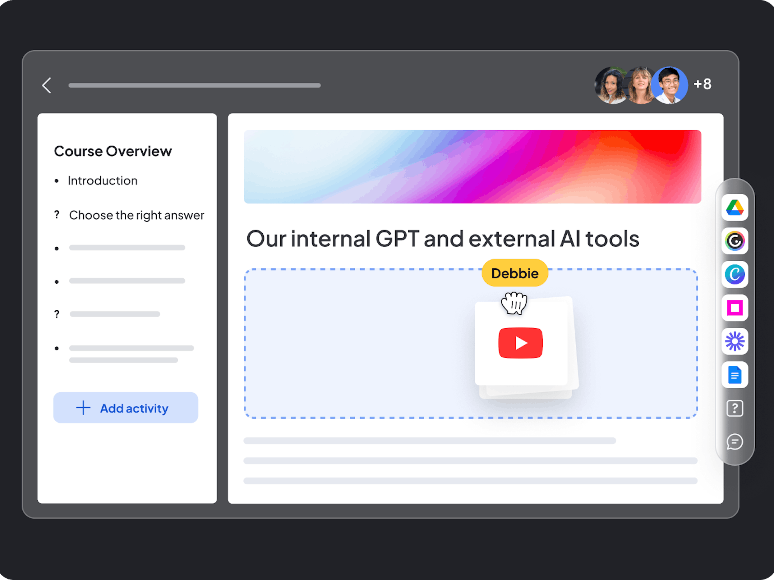 Give your authors creative superpowers to wow learners–no technical expertise required. With just one click, import SCORM courses, add videos, images and documents in any format to make training fun, engaging, and relevant.