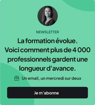 Vous avez déjà des bases en IA ? Ce parcours vous permet d’aller encore plus loin : en le suivant, vous comprendrez comment intégrer l’IA directement dans vos processus de Formation. Production à grande échelle de contenus de formation par vos experts, mise en œuvre d’une stratégie de compétences.. Apprenez à booster la performance en utilisant des techniques d’IA avancées. Suivez ce cours une fois que vous avez terminé le précédent : “Les fondamentaux de l’IA pour la Formation”.
