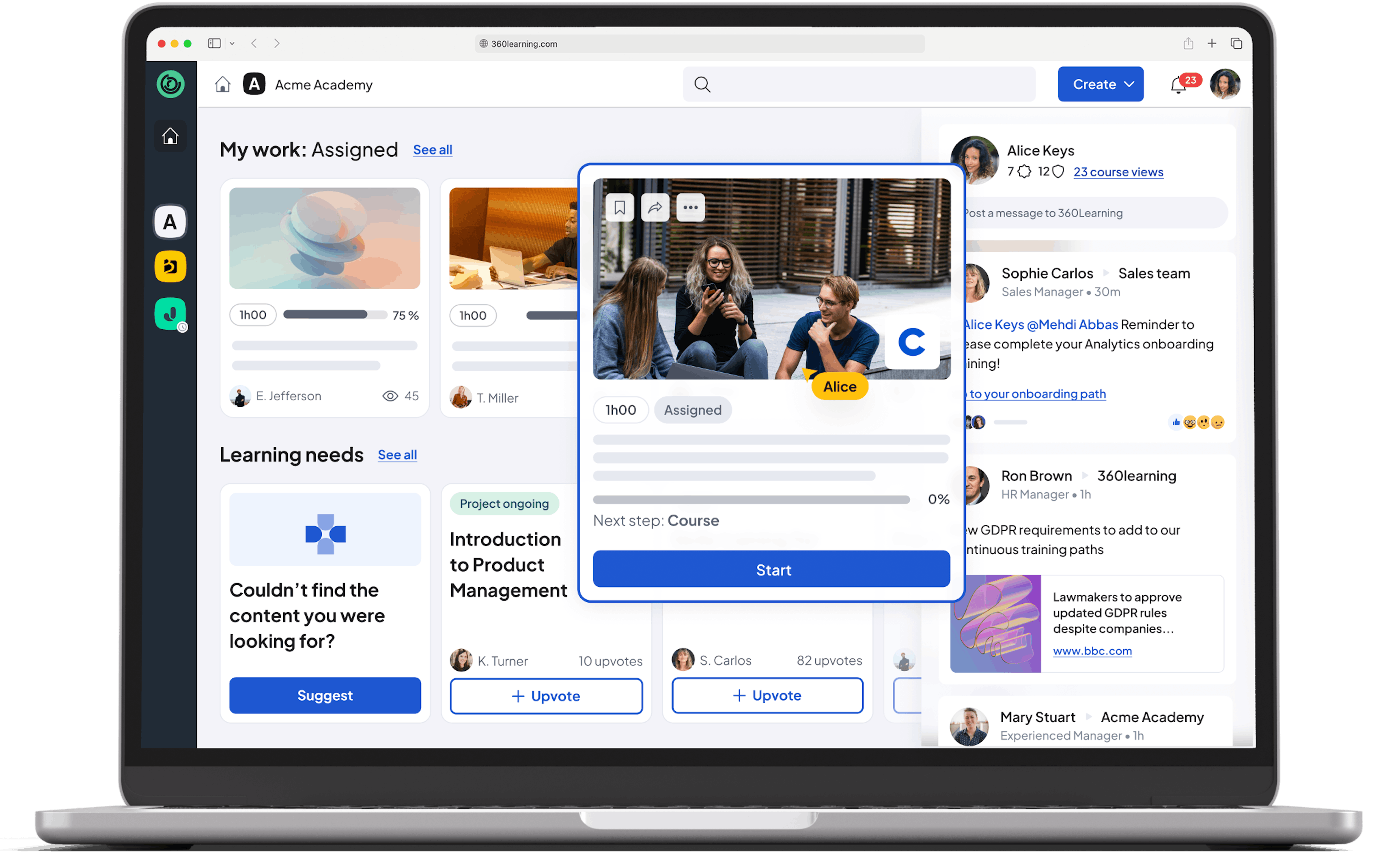 Struggling to show your learning strategy’s business impact? View digestible dashboards with actionable data to track learners, measure success, and make adjustments.